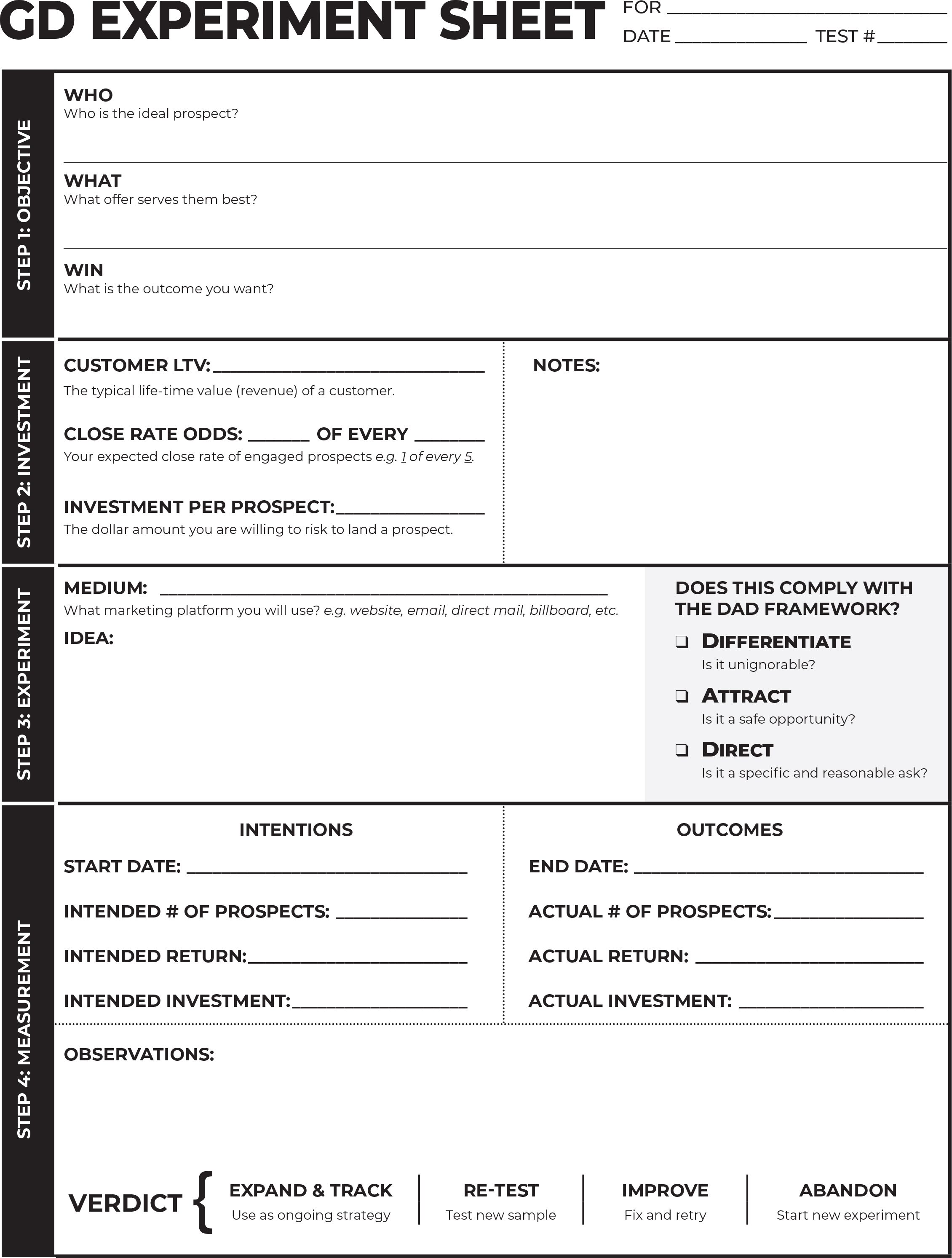 So what are you going to do? I assume you didn’t get this far because you give up easily. If you want to get noticed and get real results in a crowded market, follow the DAD methodology in Get Different. Based on years of marketing research and experiments, The DAD Method offers a blueprint for engaging and converting your prospects into leads. DAD stands for Differentiate, Attract, and Direct. Without further adieu, here are the three main steps from Get Different to ensure your marketing is engaging – and effective. For good.